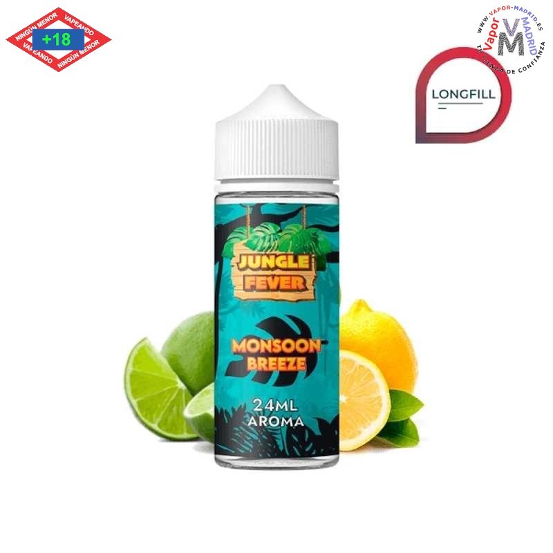 El aroma Monsoon Breeze en formato Longfill de Jungle Fever inconfundible mezcla de lima y limón que proporciona un sabor vibrante y refrescante