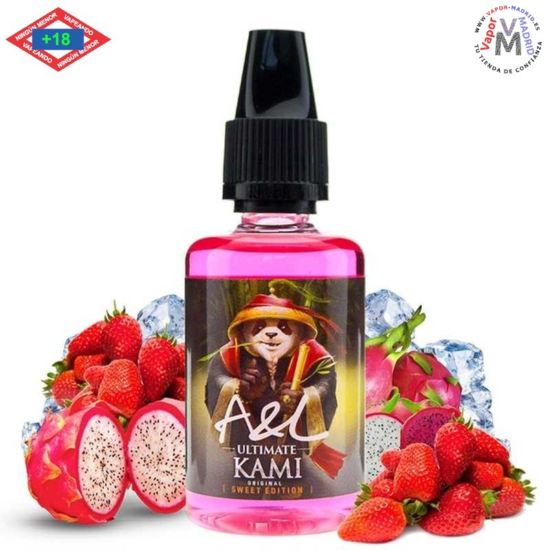 El aroma Ultimate Kami Sweet Edition de A&L conquista por su intenso sabor a fruta de dragón y fresas silvestres, sobre un fondo fresco. Una deliciosa receta afrutada y fresca, para vapear durante horas