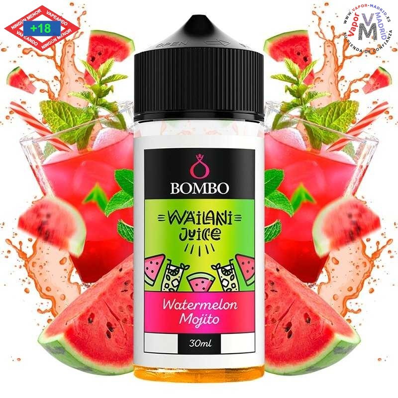 El aroma Watermelon Mojito en formato Longfill de Wailani Juice by Bombo sabe a un sorprendente y delicioso mojito de sandía. Una mezcla sabrosa y refrescante, llena de matices y contrastes que lo hacen único.