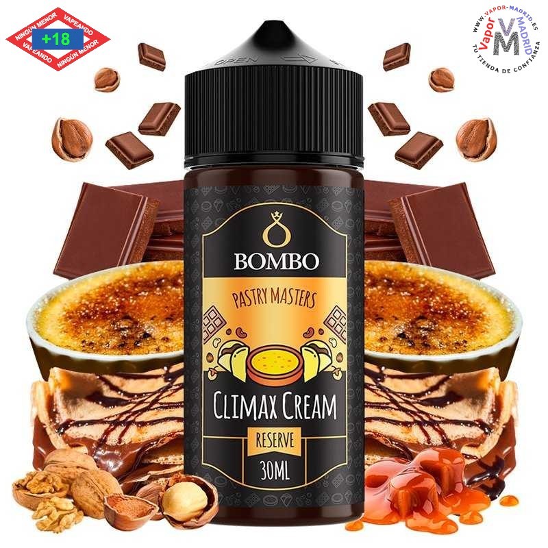 El aroma Climax Cream de Pastry Masters by Bombo en formato Longfill, sabe a crepe de crema catalana con pepitas de chocolate, frutos secos y notas acarameladas. Una receta con doble proceso de maceración, que está destinada a ser el “buque insignia” de los postres.
