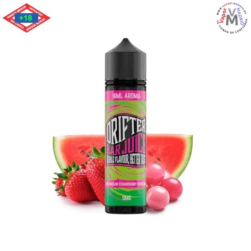 Drifter Bar Watermelon Strawberry Bubblegum 16ml Longfill mezcla deliciosa que combina la dulzura de la jugosa sandía, el toque fresco de las fresas maduras y el clásico sabor a chicle
