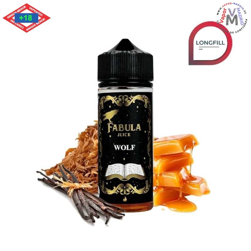 Disfruta de Fabula Wolf que combina una base de suaves tabacos combinados con caramelo y vainilla ofreciendo un sabor potente.