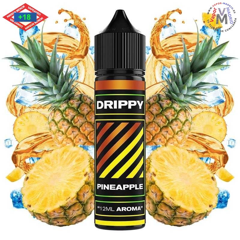 El aroma Pineapple de Drippy en formato Longfill, es un refrescante líquido con el exótico y dulce sabor de la piña, que evoca la frescura de los trópicos en cada sorbo