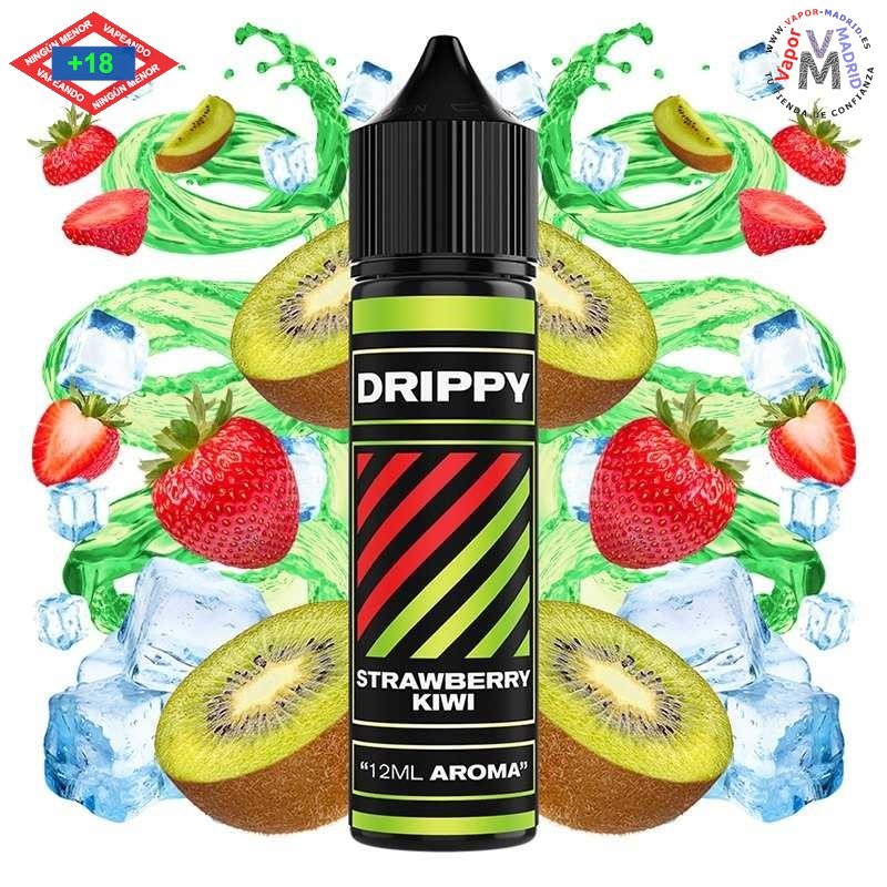 El aroma Strawberry Kiwi de Drippy en formato Longfill, combina la intensidad dulce de las fresas en su punto justo con el toque ácido y refrescante del kiwi, creando una mezcla sabrosa y llena de energía.