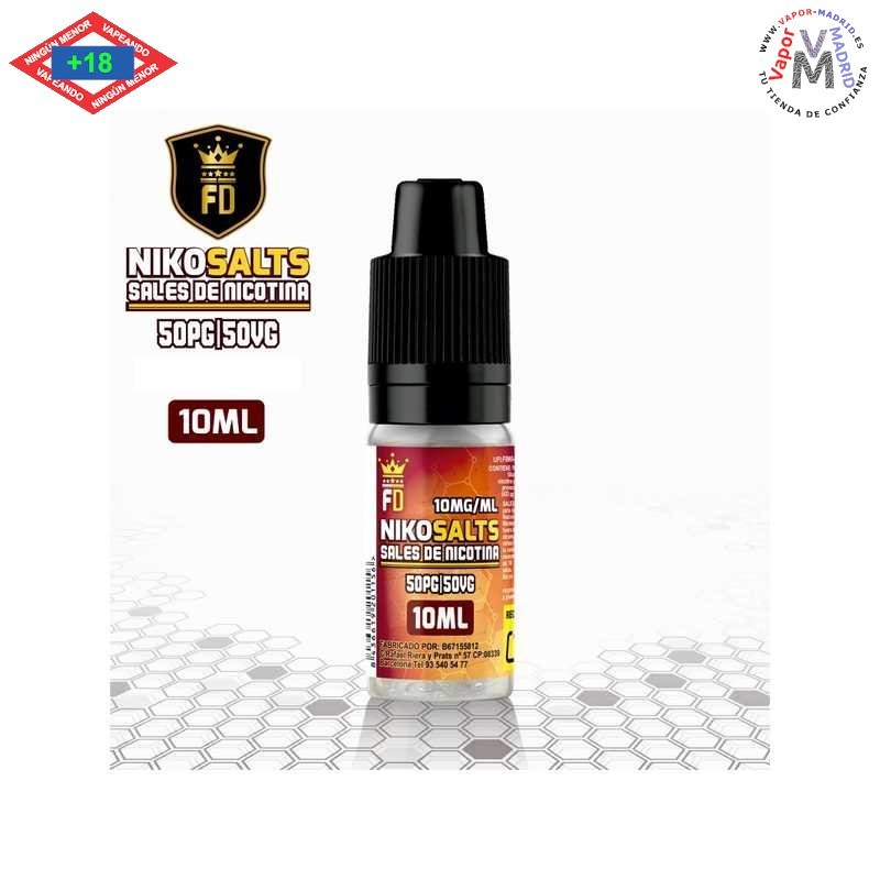 Niko Salts es una base con 10mg o 20 mg de sales de nicotina en formato de 10ml, perfecta para añadir a tus líquidos preferidos y obtener un resultado con nicotina de forma rápida y sencilla. Con una proporción 50/50 (PG/VG), ofrece un golpe suave y una absorción eficiente, ideal para quienes buscan una experiencia más equilibrada y satisfactoria en su vapeo diario.