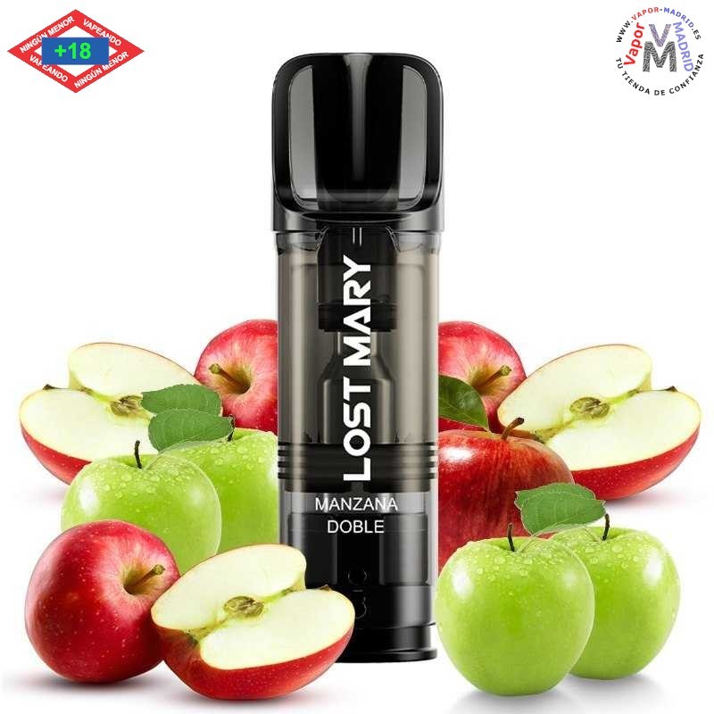 El Pod Double Apple de Lost Mary ofrece una experiencia de vapeo jugosa y deliciosa con sabor a manzana roja y verde, evocando una sensación dulce y refrescante.