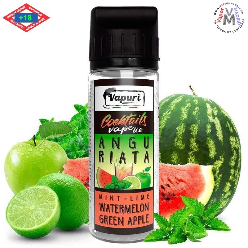 El líquido Anguriata de Vapurí ofrece la combinación definitiva con una de las frutas más populares. El sabor jugoso de la sandía mediterránea combinada con el frescor de la menta y la lima, infundida con un toque de manzana verde..