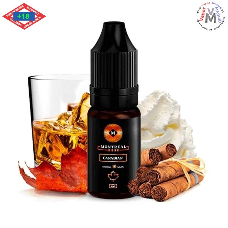 Montreal Original Salts Canadian 10ml. Sabor a crema de sirope de arce, whisky y tabaco. Montreal Original utiliza ósmosis inversa, un proceso de extracción natural que preserva la calidad de los aromas.